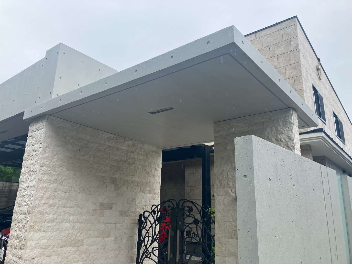 建物の顔の部分の打放しが汚れてみすぼらしいので塗装で塗るのは嫌なんですが打放しを綺麗に再現してほしいとのお声に全力で工事しました。